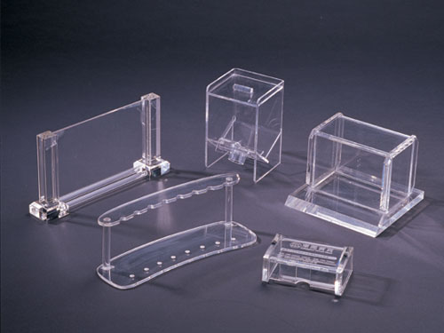 立磨法有机玻璃:将棒形有机玻璃或厚板形有机玻璃粘接后,直接在砂轮上磨制、抛光成型。用此法制作的工艺品与某种雕塑相似,由丰富多彩的表面形状,构成别具一格的艺术形象。